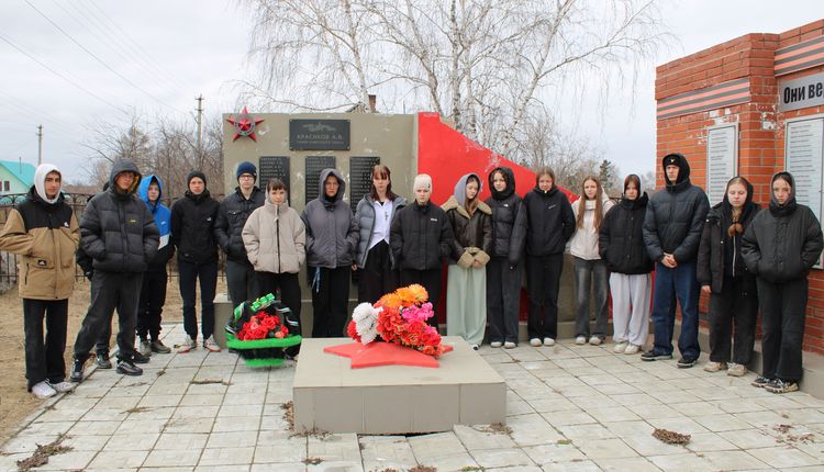 После мероприятия все участники прошли к памятнику погибшим во время Великой Отечественной войны, чтобы почтить память земляков минутой молчания и возложить цветы.
