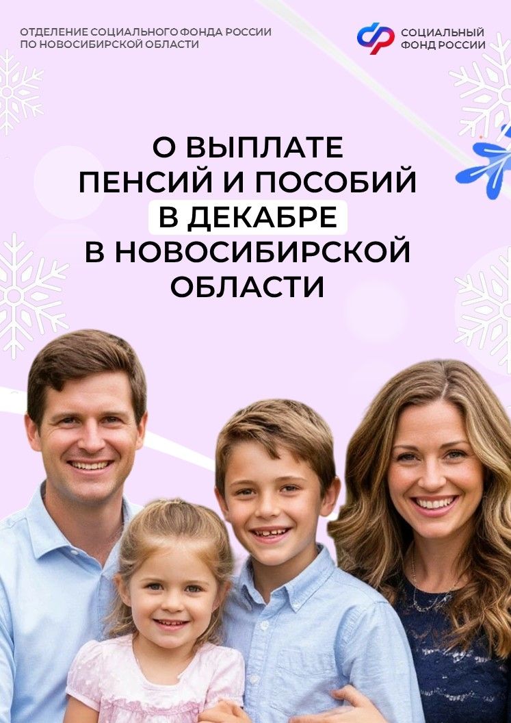 Публикуем для вас график выплат пенсий и пособий в декабре по линии Отделения СФР по Новосибирской области.