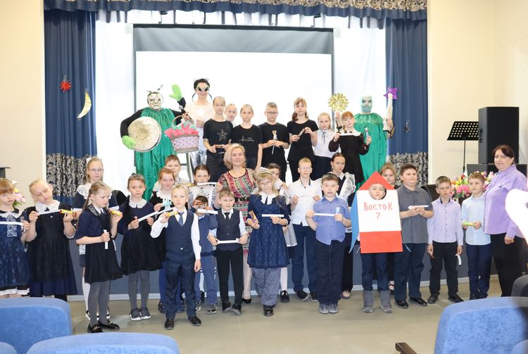 Ведущая познакомила с историей возникновения праздника, дети читали стихотворения о космических далях, о Юрии Гагарине, который первым покорил космос.