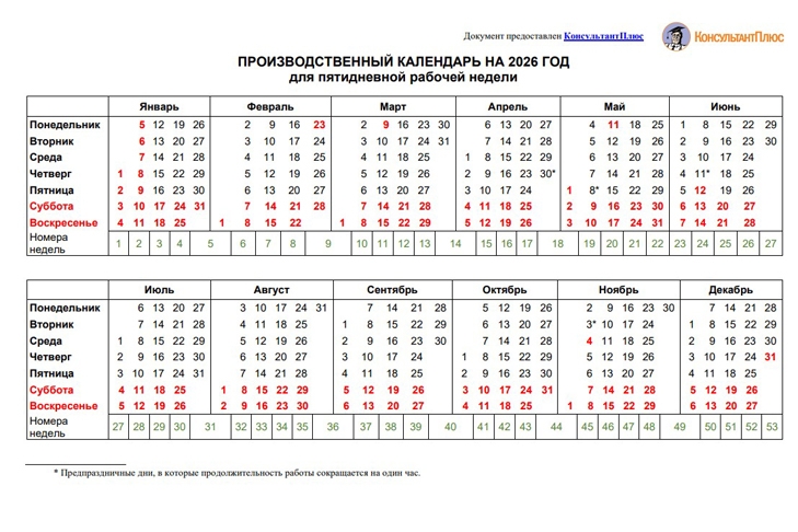 Правительство утвердило производственный календарь на 2026 год, в нем содержится вся информация о рабочих, выходных и праздничных днях.