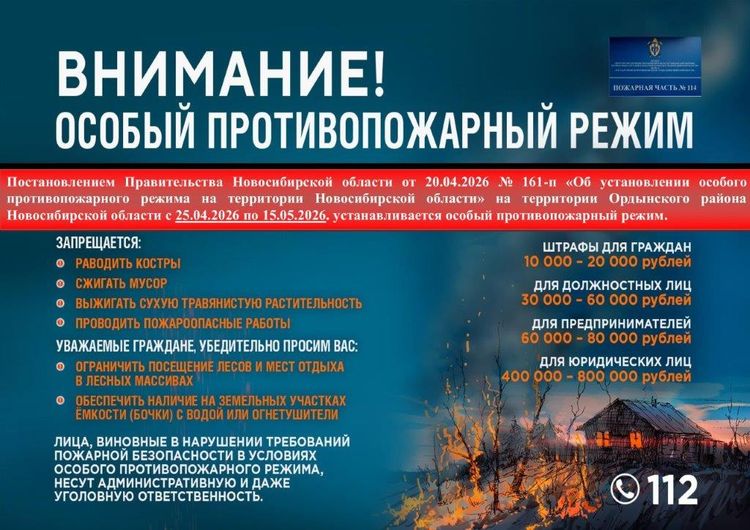 на территории Каргатского, Куйбышевского, Чулымского, Барабинского, Здвинского, Искитимского, Колыванского, Коченевского, Кочковского, Купинского, Кыштовского, Мошковского, Ордынского, Тогучинского, Усть-Тарского, Чистоозерного, Баганского, Болотнинского, Черепановского районов, Венгеровского, Маслянинского, Северного, Татарского, Убинского, Чановского муниципальных округов, в городах Бердске, Искитиме, Оби, рабочем поселке Кольцово Новосибирской области – с 25.04.2026 по 15.05.2026.