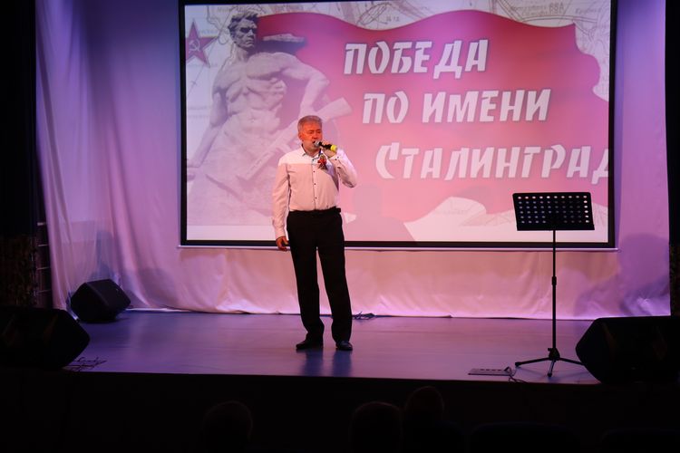 Песня «Поклонимся, великим тем годам» в исполнении Александра Верещагина тронула сердца присутствующих. Зрители посмотрели документальный фильм «Сталинградская битва».