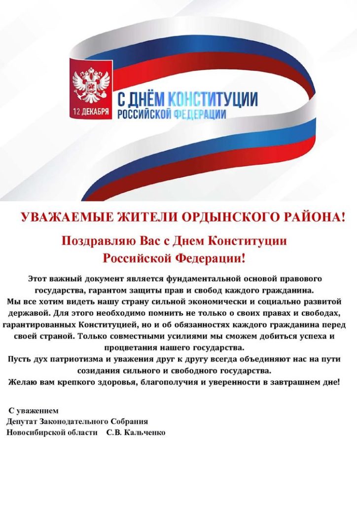 Уважаемые жители Ордынского района, поздравляем вас с Днем Конституции Российской Федерации!