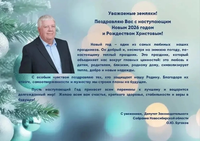Дорогие земляки, жители Новосибирской области! Поздравляем вас с наступающим 2026 годом! Новосибирская земля всегда славилась своими талантливыми, трудолюбивыми и открытыми людьми – вами, кто день за днём вносит вклад в развитие нашего уникального региона, а значит – и всей большой […]