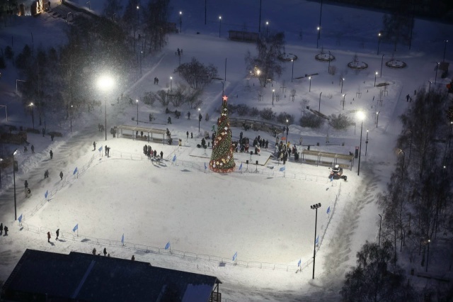 В Бугаков-парке Новосибирска обустроено новогоднее пространство с ёлкой и катком