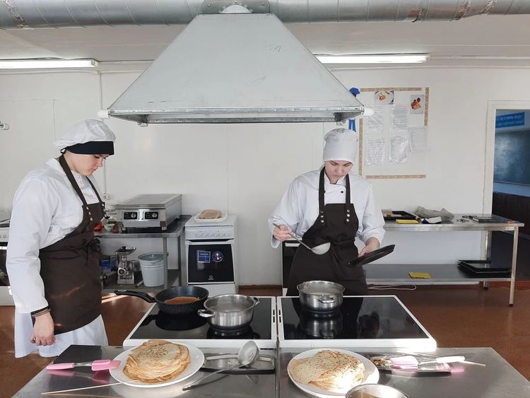 Главными угощениями стали блины, символизирующие солнце и возрождение природы. Их приготовили с любовью под руководством преподавателя Тинько В. И., мастера производственного обучения Синюковой Н. Я. и студентов второго курса Шитова Д., Романенко М. и Петровой С. Каждый смог попробовать эти вкусные блины.