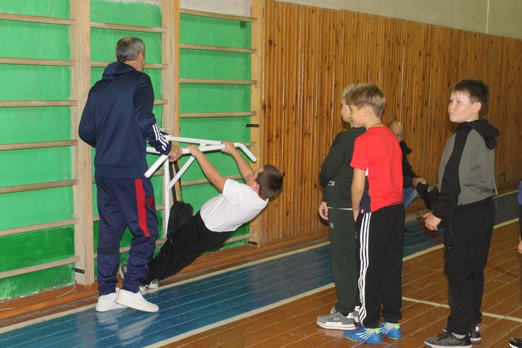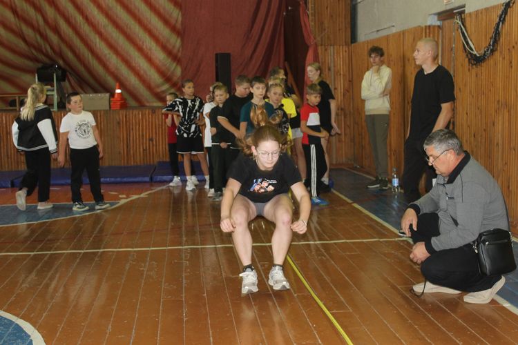 Ребята выполнили ряд упражнений: прыжок в длину с места, челночный бег, поднятие туловища из положения лежа (пресс), наклон на гимнастической скамье (линейка), упражнение на перекладине.