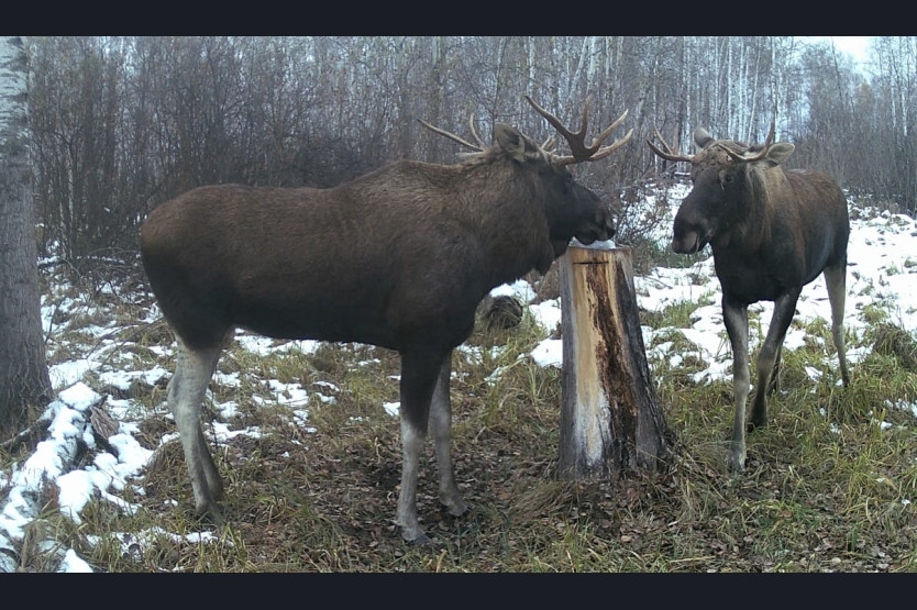 Сотрудники регионального минприроды опубликовали уникальные фотографии лосей, запечатлённых в дикой природе с помощью фотоловушек.